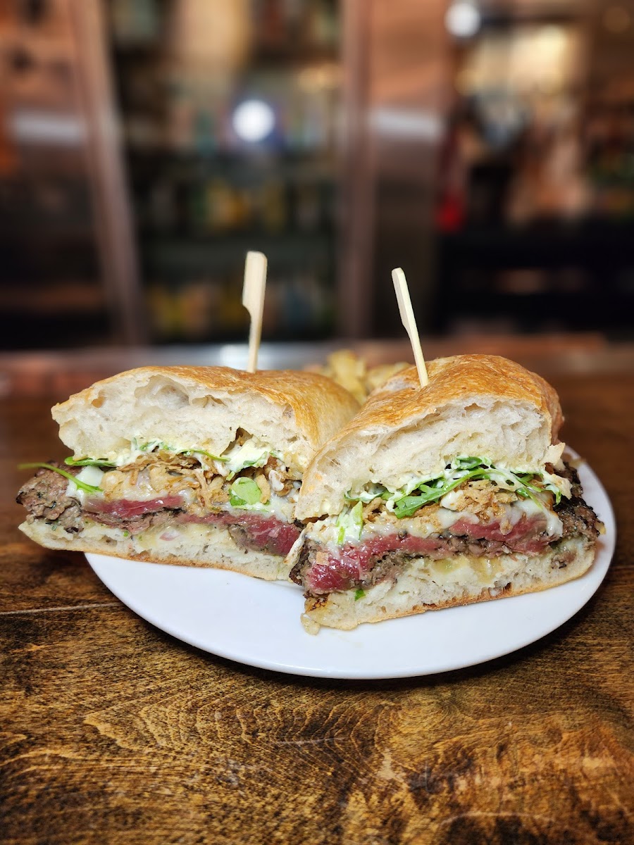 - Highlights: Cocktail bar, American cuisine, sandwiches, vegan options, outdoor seating, Happy Hour specials