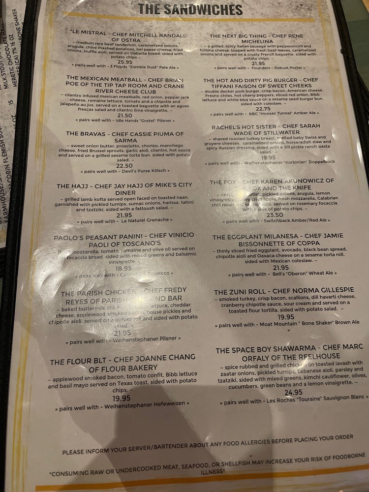 CHEF JAMIE BISSONETTE OF COPPA- thinly sliced fried eggplant, avocado, black bean spread, chipotle aioli and Oaxaca cheese on a sesame torta roll sided with Mexican coleslaw